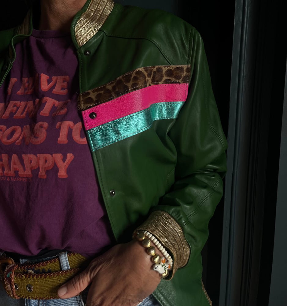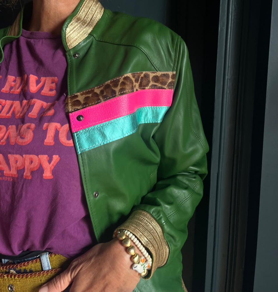 •Blouson en cuir vert très souple 🐪 fait main dans les ateliers de mon artisan tailleur