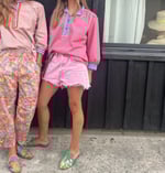 pied de poule rouge et blanc biais 🇫🇷 bouton rose