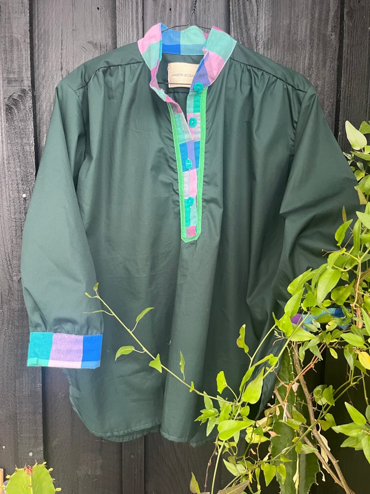 blouse en popeline de coton violette ( empiècement et boutons chinés )
