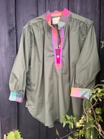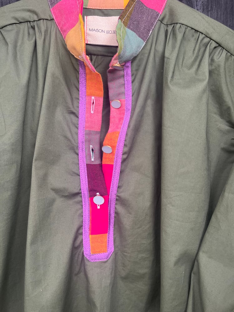 blouse en popeline de coton kaki ( empiรจcement et boutons chinรฉs )